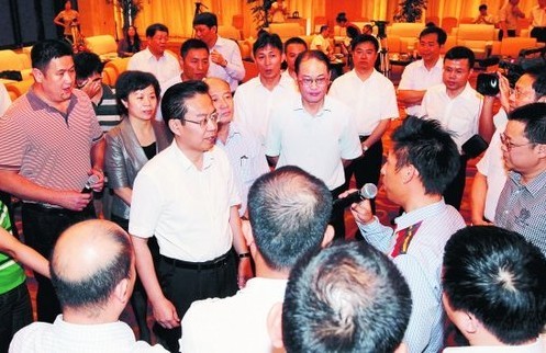 在近4个小时的座谈中,从开始的坐着谈,到后来围拢着站着谈,企业家们与省长热烈而坦诚地交流,提出了组建服装设计师协会、加大战略性新兴产业扶持、建立区域布料市场和保税物流市场、提升服装博览会和石材博览会的层次、设立石材学院和茶叶学院、建立在线版权保护机制、就近设立食品检验机构、设立园林机械国家级技术中心等一系列具体的意见和建议。苏树林充分肯定企业家们加快发展的强烈愿望和具体思路,要求省政府办公厅、省发改委、经贸委、外经贸厅等部门一一加以跟进落实。
